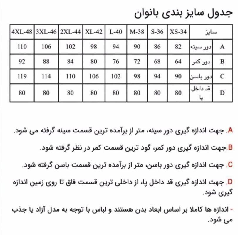 توجه: جدول سایز در صفحه دوم می باشد راهنمای سایز: سایز ۱ مناسب برای ۳۴ تا ۳۸ و سایز ۲ مناسب برای ۴۰ تا ۴۴