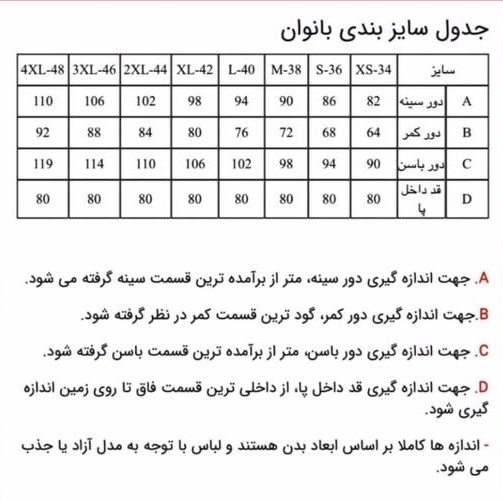 توجه: جدول سایز در صفحه آخر می باشد راهنمای سایز: سایز ۱ مناسب برای ۳۴ تا ۳۸ و سایز ۲ مناسب برای ۴۰ تا ۴۴