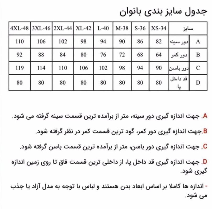 توجه: جدول سایز در صفحه دوم می باشد